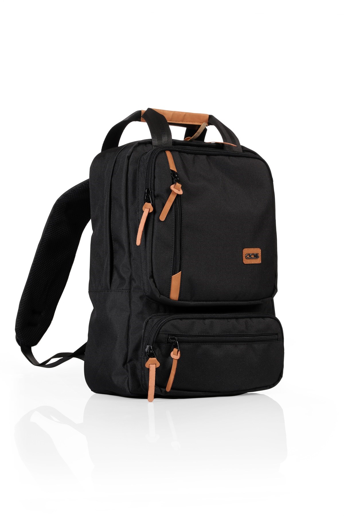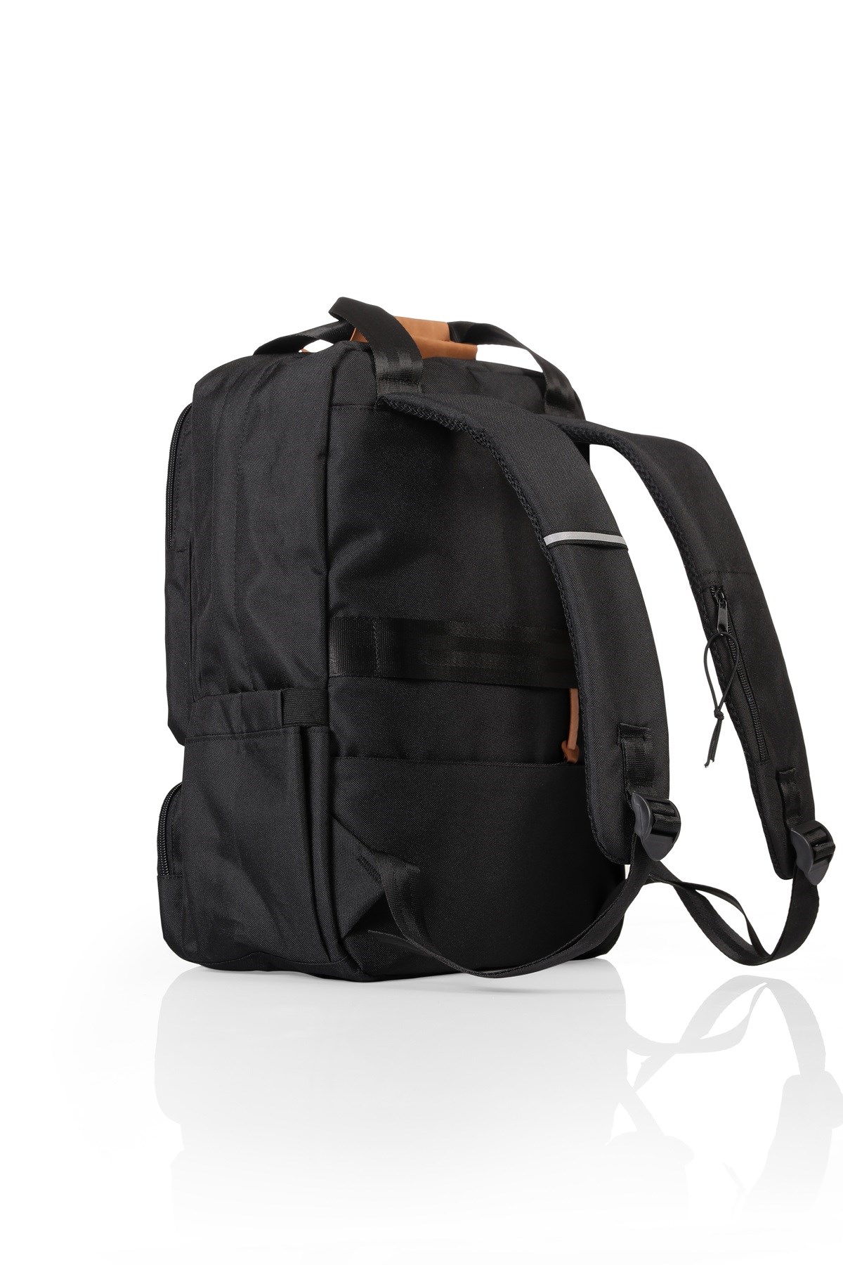 Notebook çantası və kürək çantası kimi istifadə edilə bilər. Kart qoymaq üçün arxa kəmərlərdə əlavə fermuarlı göz var.