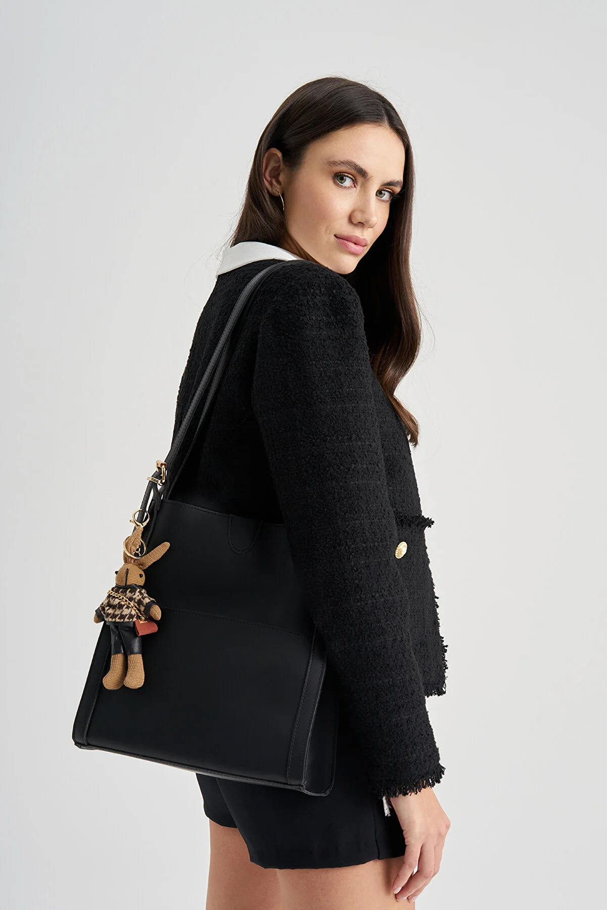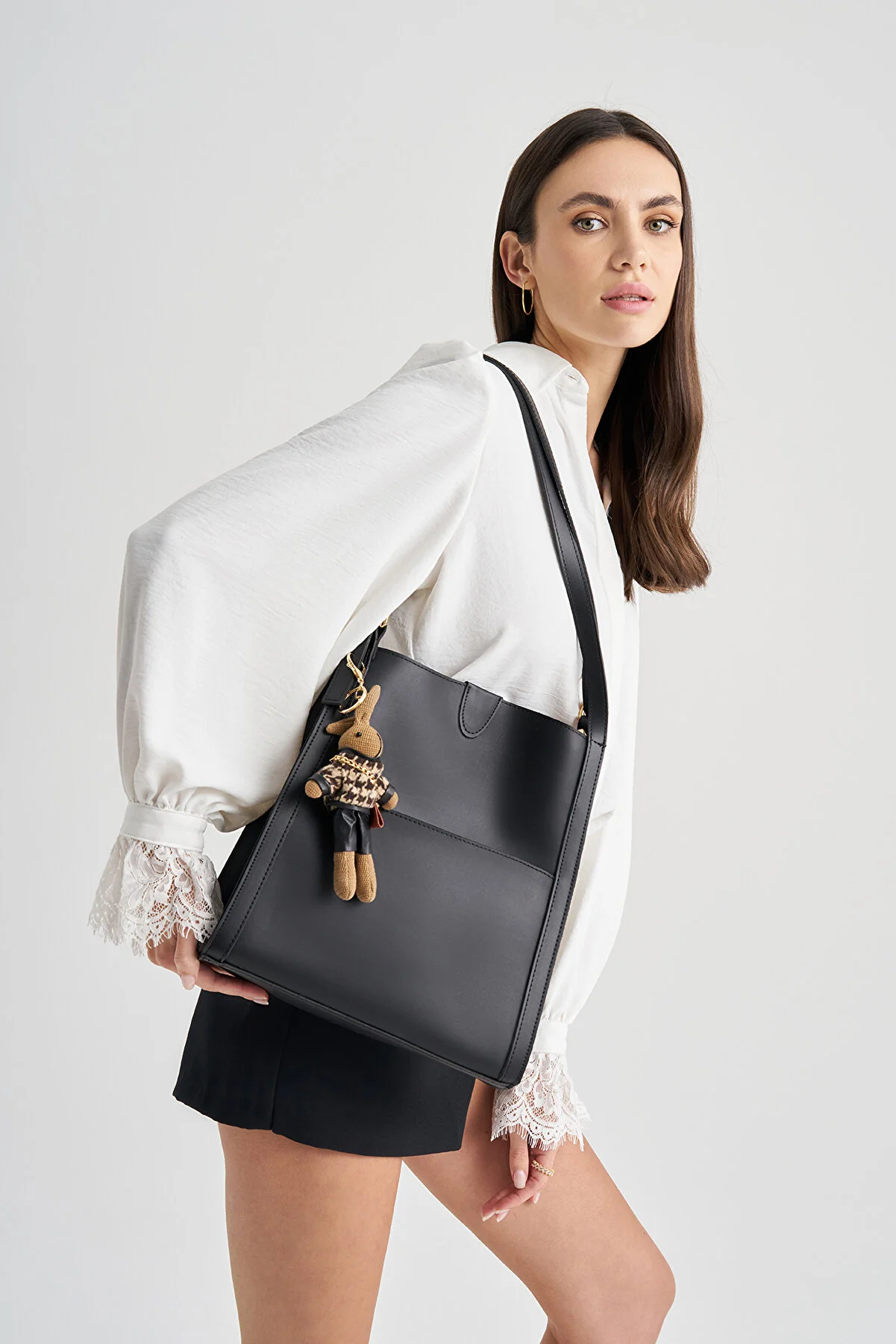 Lucky Bees oyuncaqlı qadın qara əl və çiyin çantası