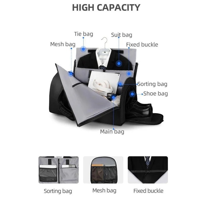 Mark Ryden Çoxməqsədli bölmələri olan suya davamlı iş kostyumu və səyahət çantası
