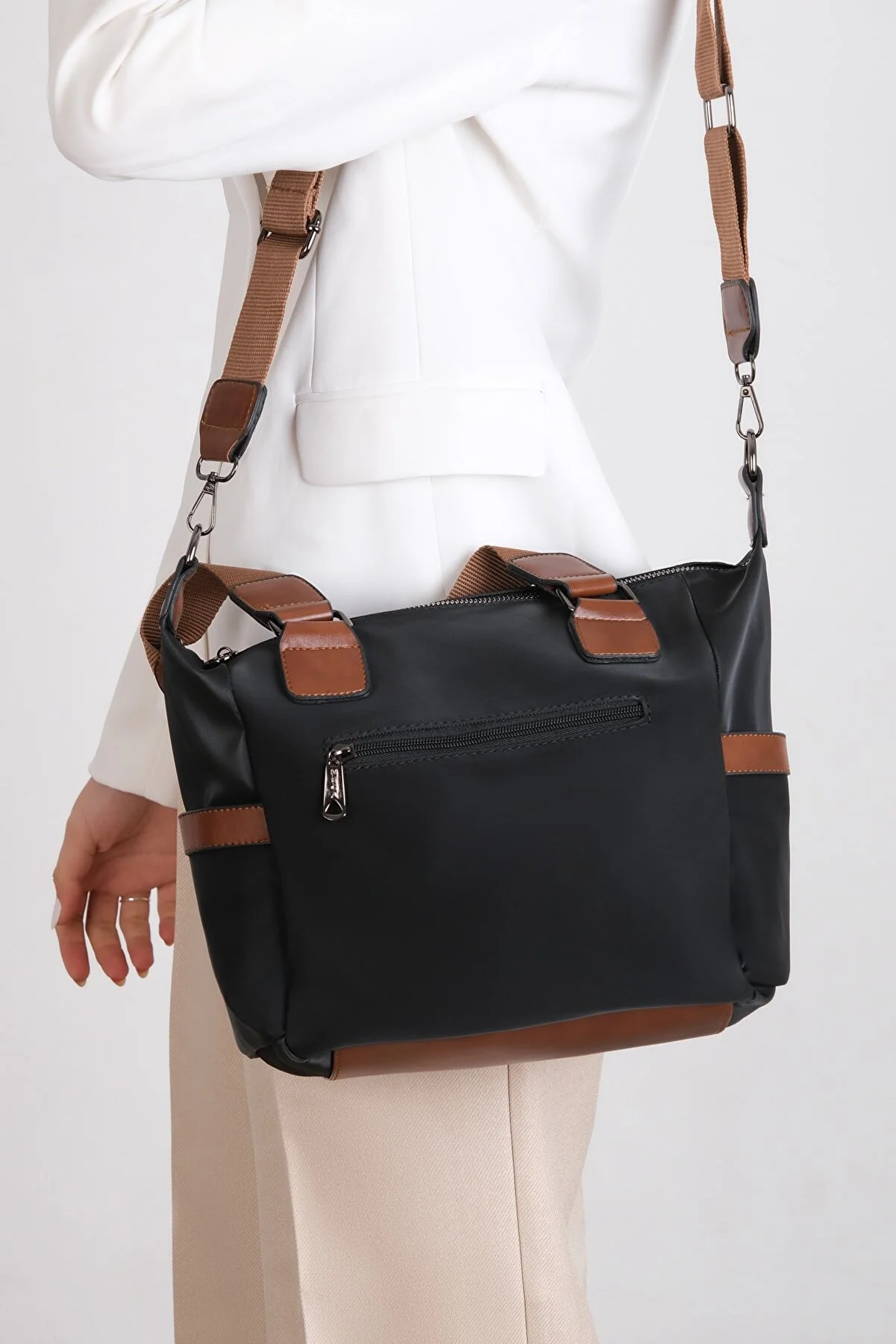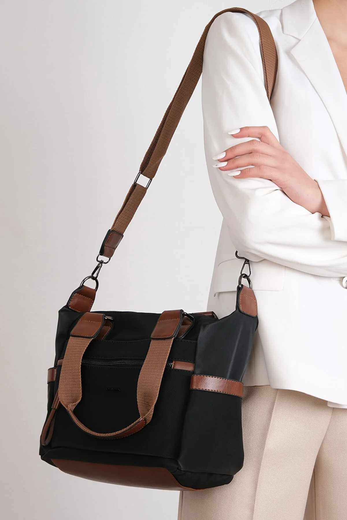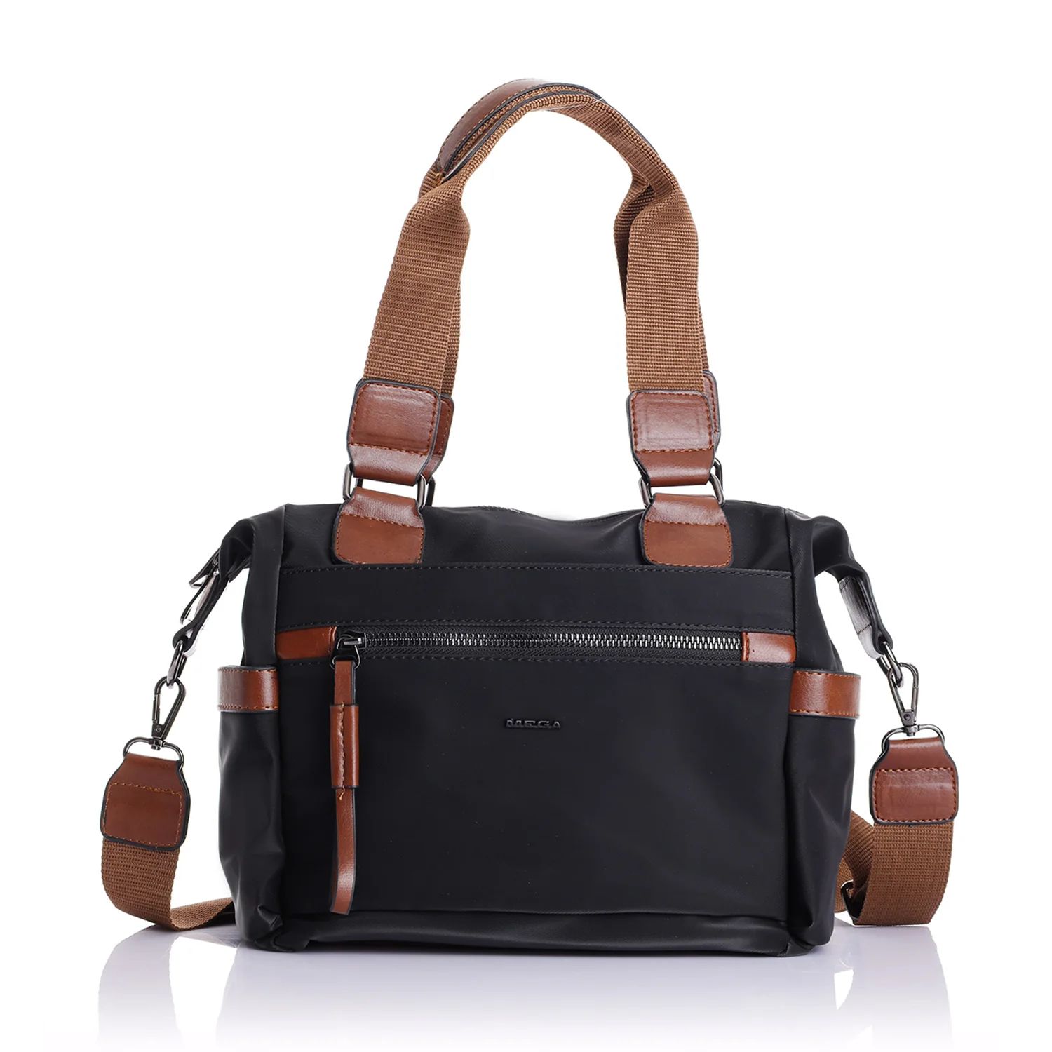 Mega qadın çoxbölməli qara əl və çiyin çantası