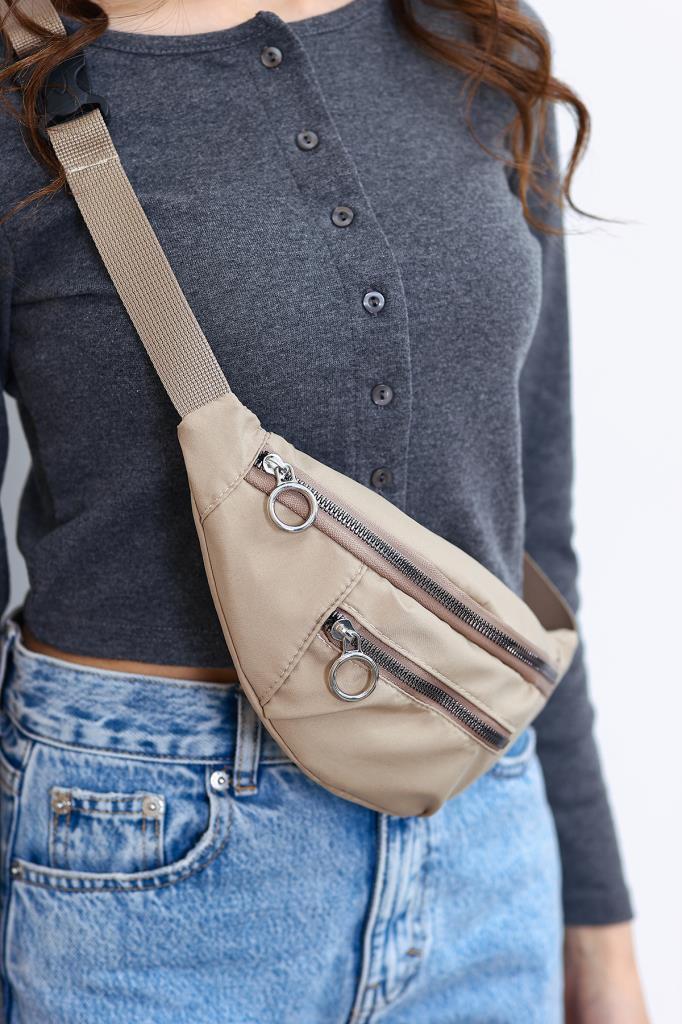 Əsas səhifəqadın çantalarıbel və sinə çantaları Qadın iki gözlü bel çantası bej