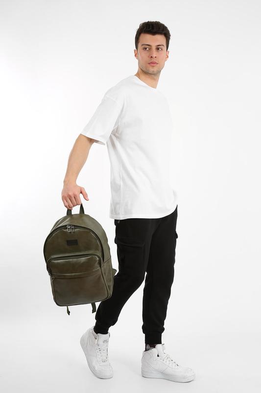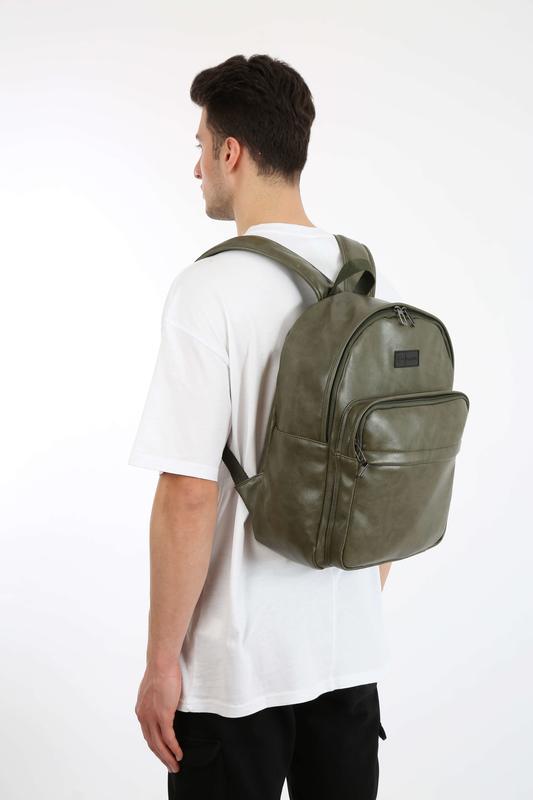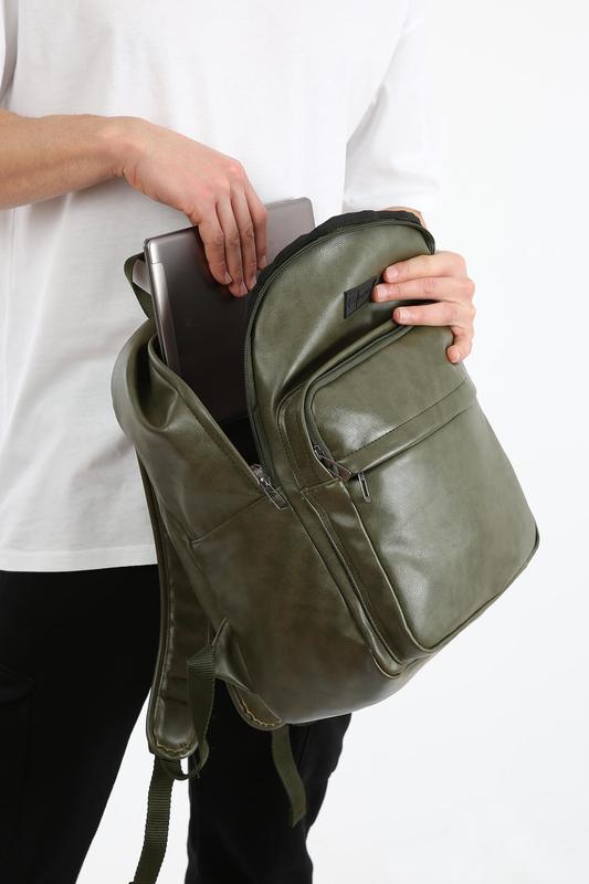 Süni dəri unisex xaki laptop cibli kürək çantası