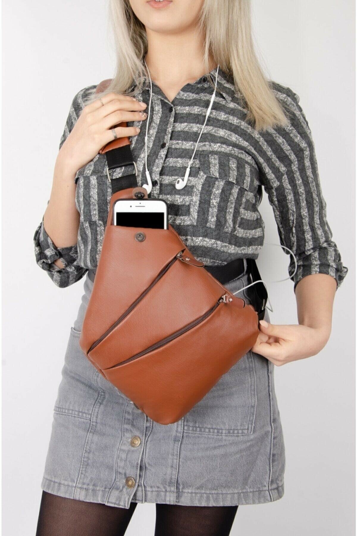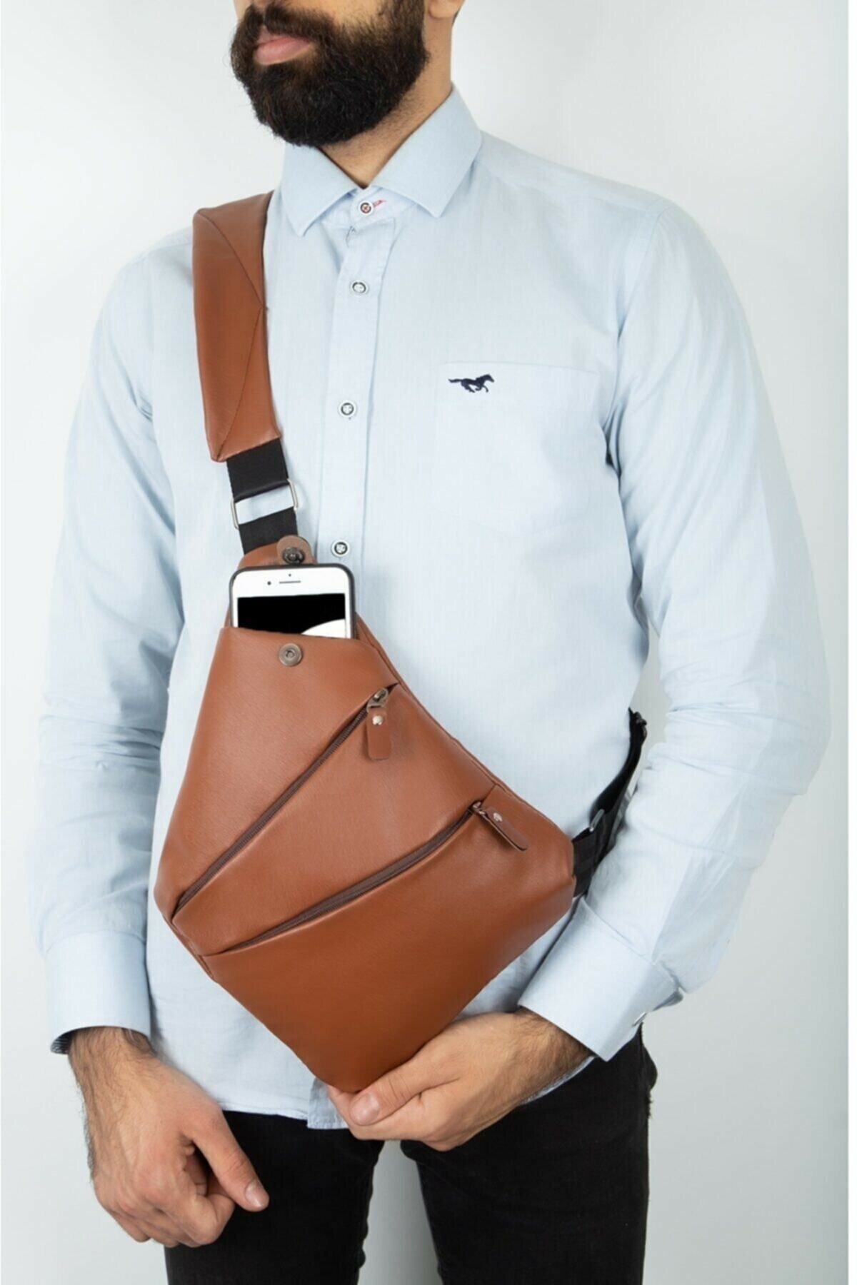 Unisex qəhvəyi çiyindən asma qayışlı çarpaz çanta